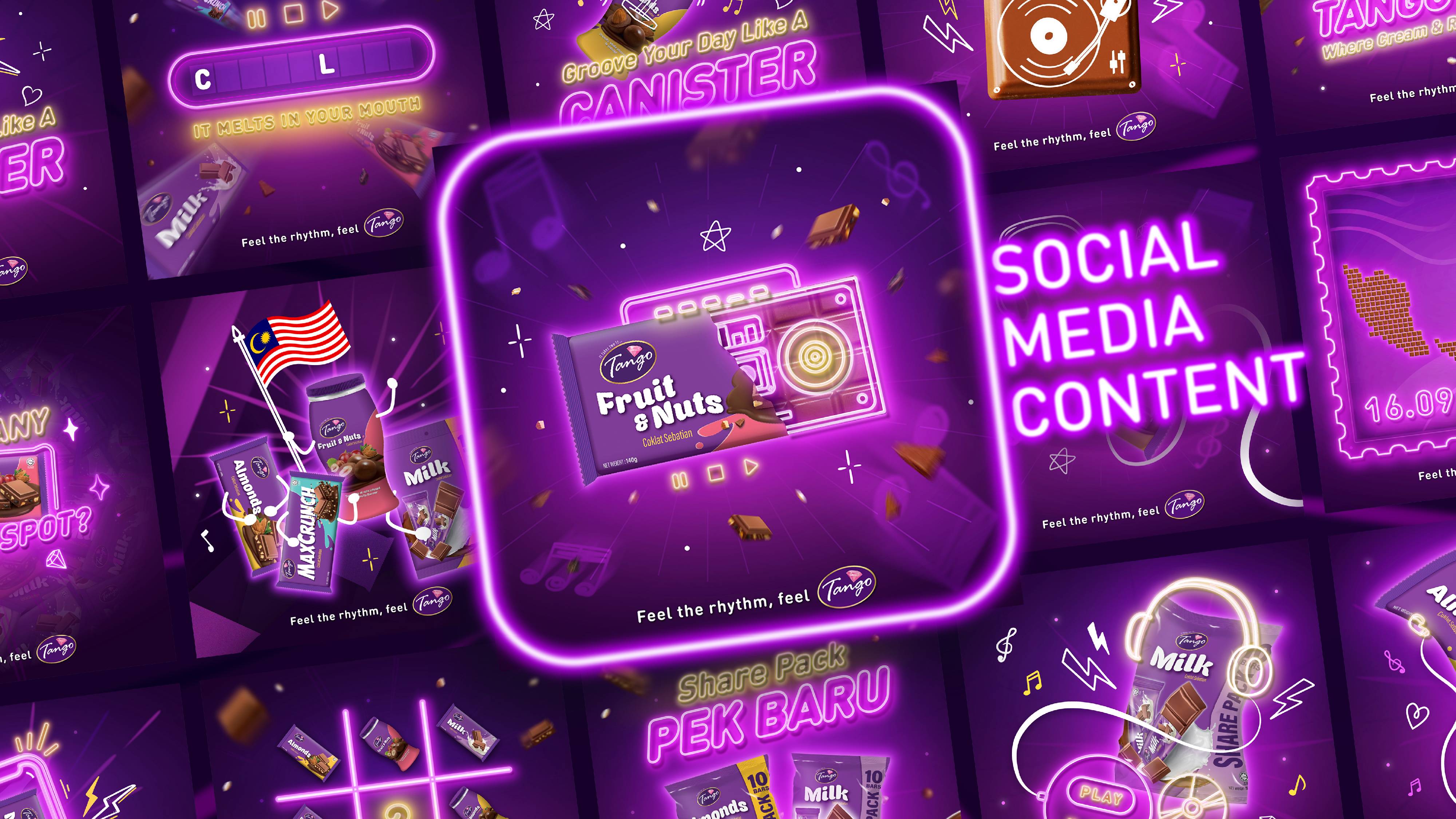 We infuse the energy of music and dance into every bite. Through vibrant neon light elements, our visuals and campaigns ignite feelings of joy, pleasure, and excitement. Picture our packaging glowing with dynamic hues, inviting you to join the rhythm of life. From chocolate-inspired dance challenges to visually stunning ads set to lively beats, Tango Chocolate celebrates life in motion, glowing bright with every indulgent moment. Feel the rhythm, feel Tango.