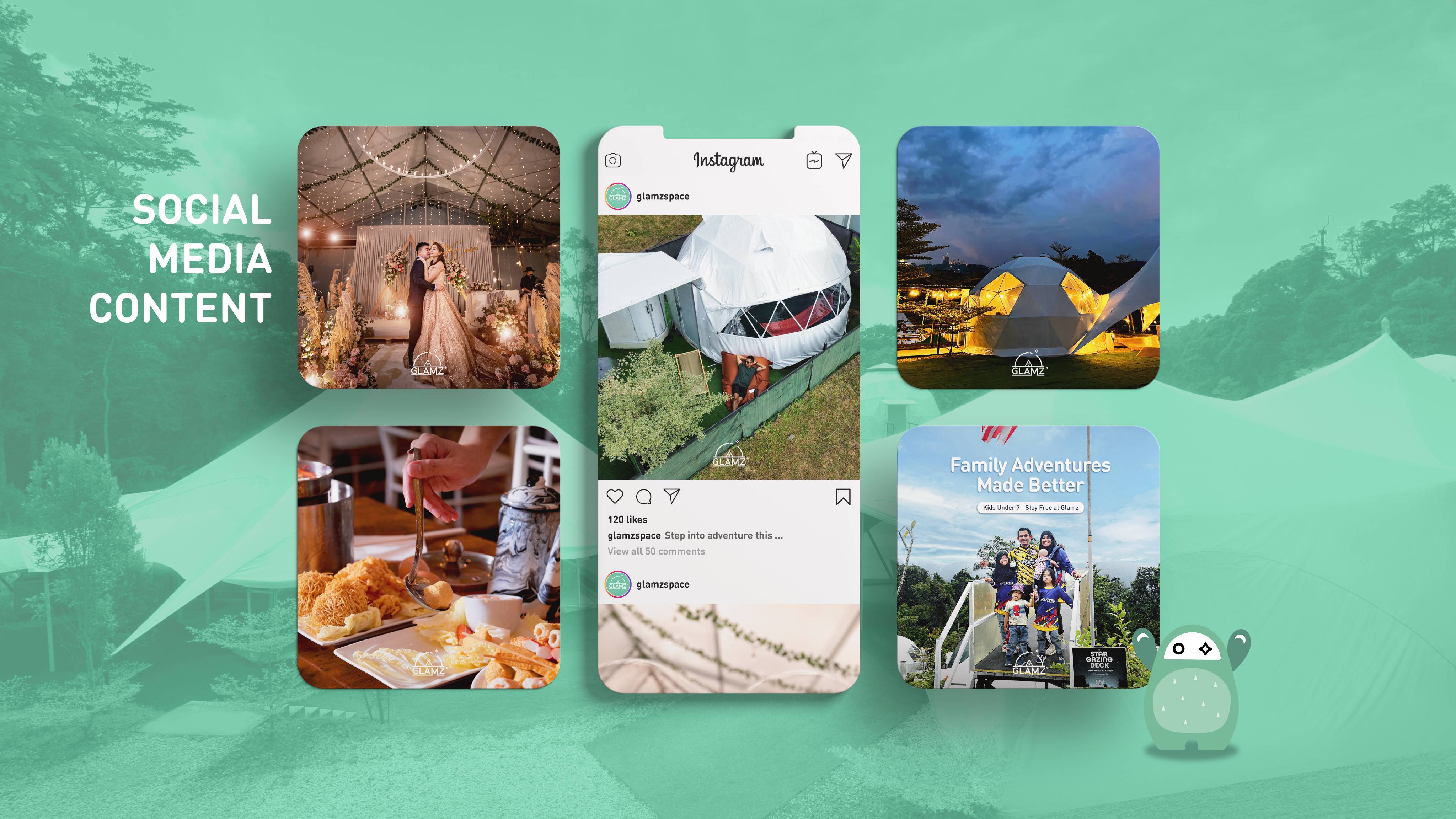 With its iconic dome-shaped tents and versatile event spaces, Glamz promises a one-of-a-kind experience for every visitor. The social media strategy focuses on showcasing the unique and fun aspects of glamping, highlighting user experiences and the vibrant natural surroundings. Through captivating visuals and engaging storytelling, we aim to ignite curiosity and excitement, inviting guests to embark on an unforgettable journey at Glamz.